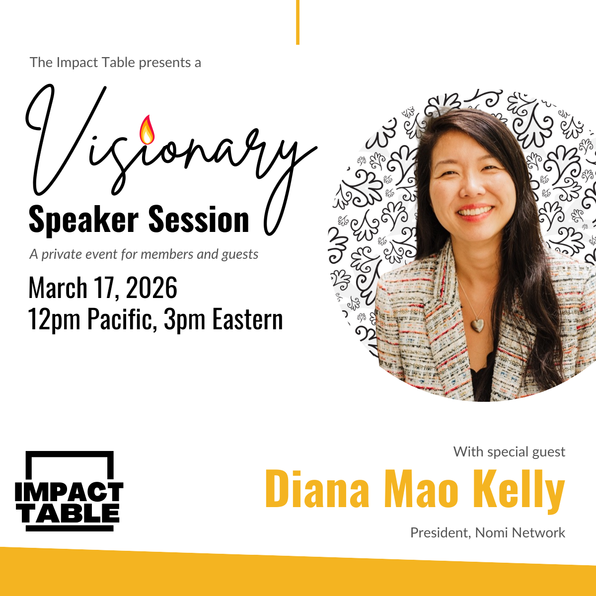 Join us on March 17th at 12pm Pacific | 3pm Eastern for a Visionary Speaker Session with special guest Diana Mao Kelly.